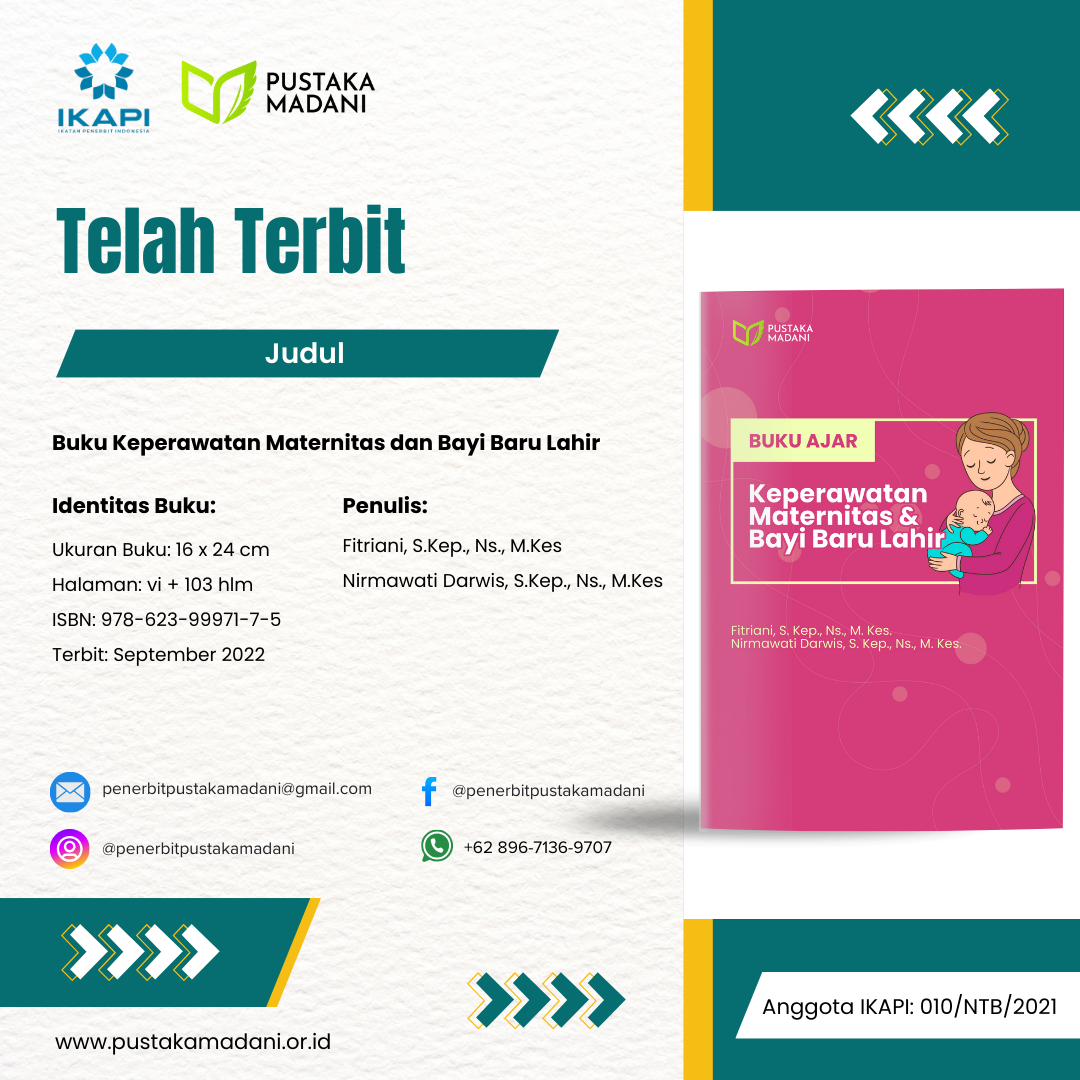 Buku Ajar Keperawatan Maternitas dan Bayi Baru Lahir inimerupakan salah satu buku penuntun bagi mahasiswa keperawatan maupun bagi praktisi keperawatan yang dapat dijadikan sebagai bahan ajar bagi dosen mata kuliah keperawatan maternitas dan keperawatan anak. Dalam buku ini diuraikan seharusnya bagaimana mahasiswa keperawatan atau dosen maupun praktisi keperawatan dapat memberikan asuhan secara professional. Setiap langkah dalam proses keperawatan dijelaskan secara terperinci dan dilengkapi dengan contoh diagnosa keperawatan yang lazim muncul sesuai dengan kasus menggunakan rujukan SDKI sehingga memudahkan pembaca memahami dan mengaplikasikannya pada tatanan pelayanan. Materi dalam buku ini mencakup: