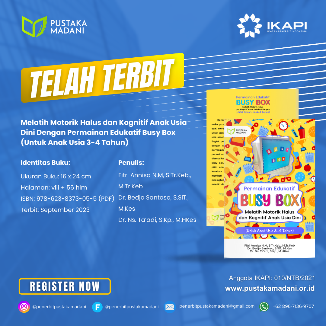 Bermain bagi anak usia dini sangatlah penting, dengan bermain maka proses belajar akan efektif dan lebih cepat ditangkap pada saat mereka bermain serta salah satu manfaat dari bermain baik untuk pengembangan kognitif anak43.Idealnya semakin bertambahnya usia seseorang,maka pengalaman lebih banyak dan berdampak pada tingkat pengetahuannya. Kemanpuan Kognitif anak dapat ditunjukan dengan cara melaksanakan kegiatan bermain menggunakan alat permainan yang mengandung unsur atau nilai edukatif. Alat permainan edukatif dapat mengoptimalkan perkembangan anak, disesuaikan dengan usia dan tingkat perkembangannya. Permainan Busy Box, merupakan jenis permainan edukatif untuk melatih pola pikir anak dalam menyusun potongan-potongan menjadi satu kesatuan yang mempunyai bentuk yang utuh. Busy Box dapat memberi edukasi serta melatih anak usia dini sehingga dapat meningkatkan motorik halus dan kognitif sehingga bisa menjadi mandiri dalam melakukan kegiatan sehari-hari.